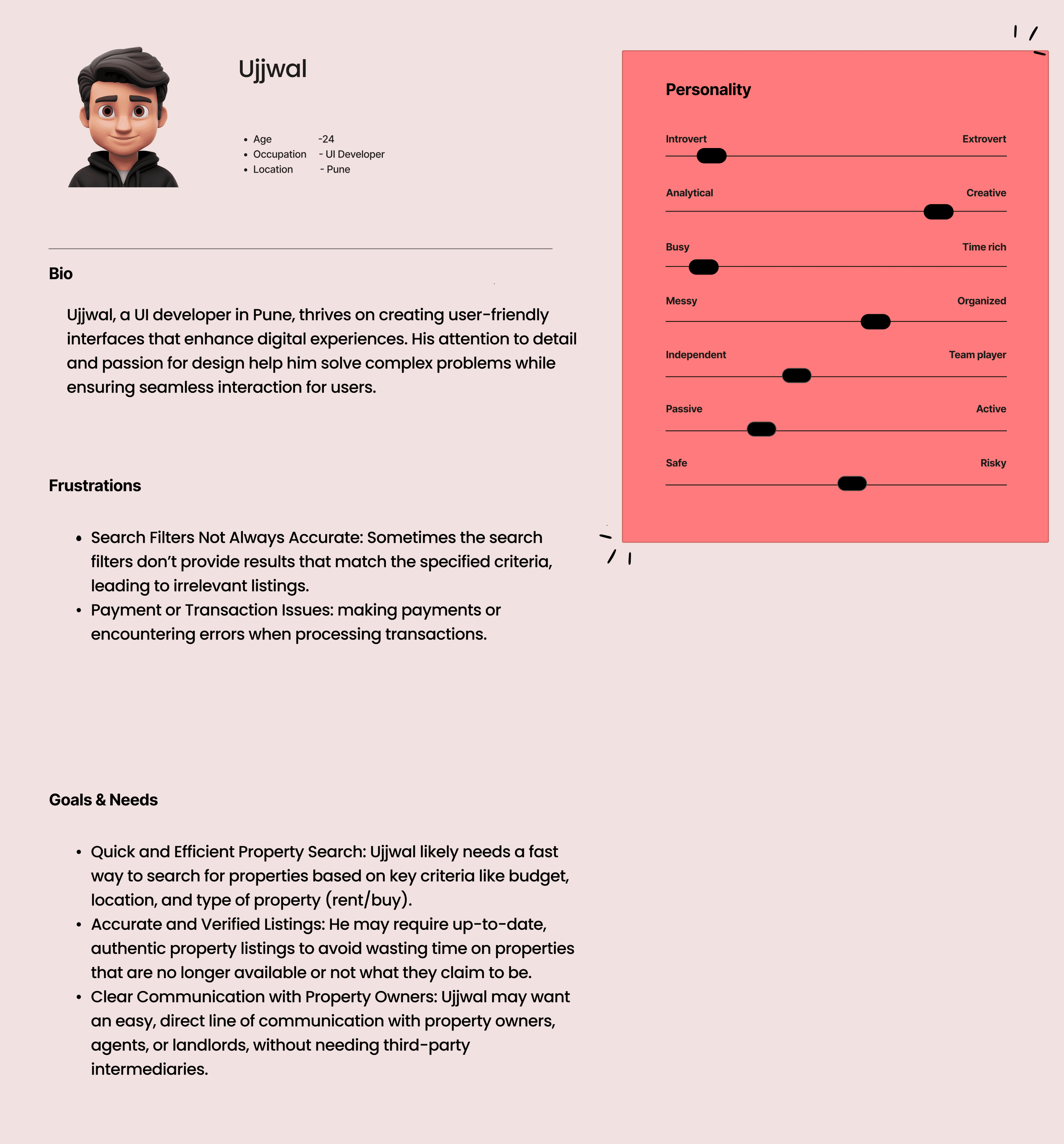 Conducting research to understand user needs, then creating and testing wireframes and prototypes to improve the property search experience.