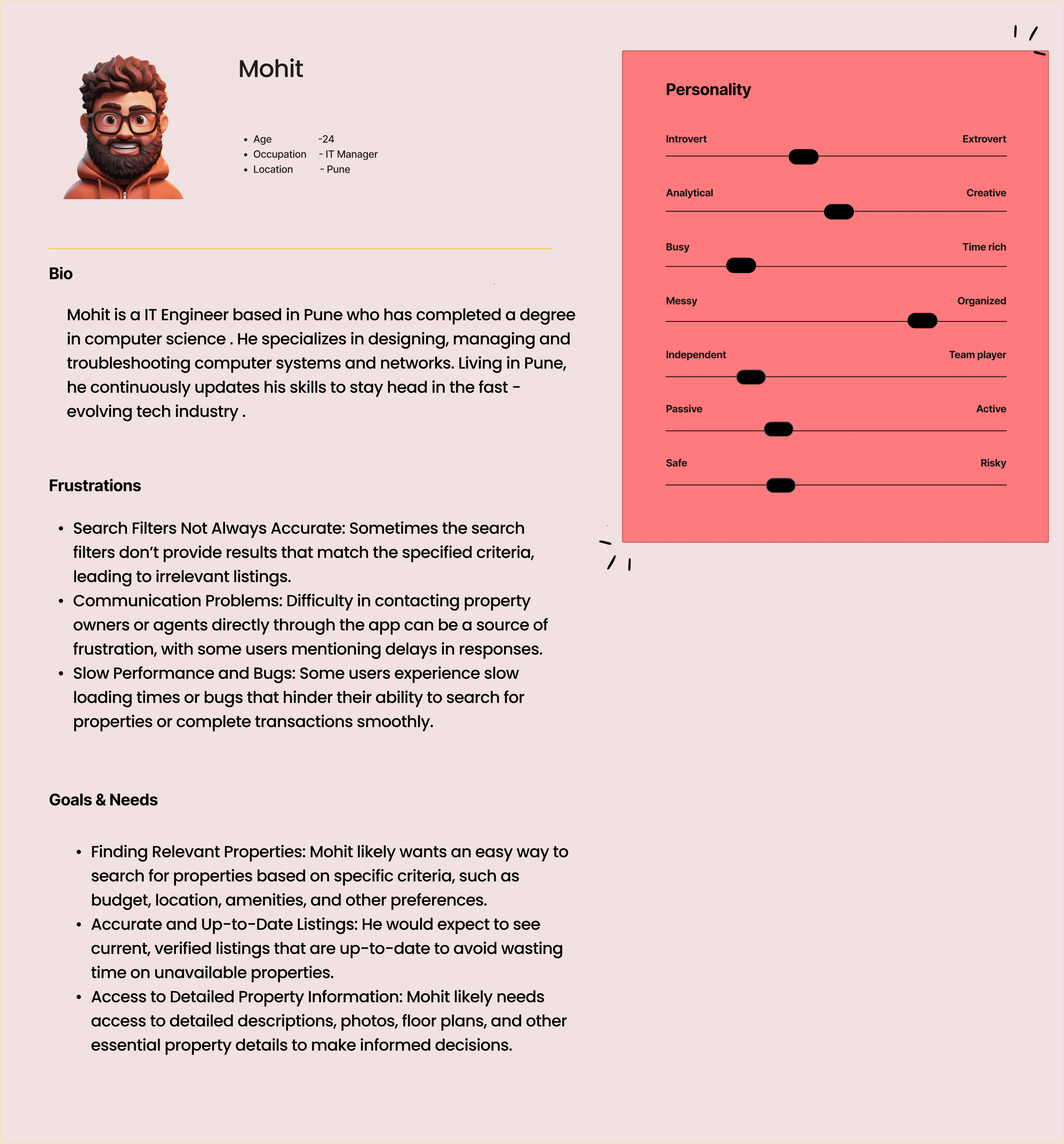 Seekers and owners struggle with reliable listings, clear communication, and document management, while new users want guidance and personalized recommendations—showing a gap between expectations and current experience.