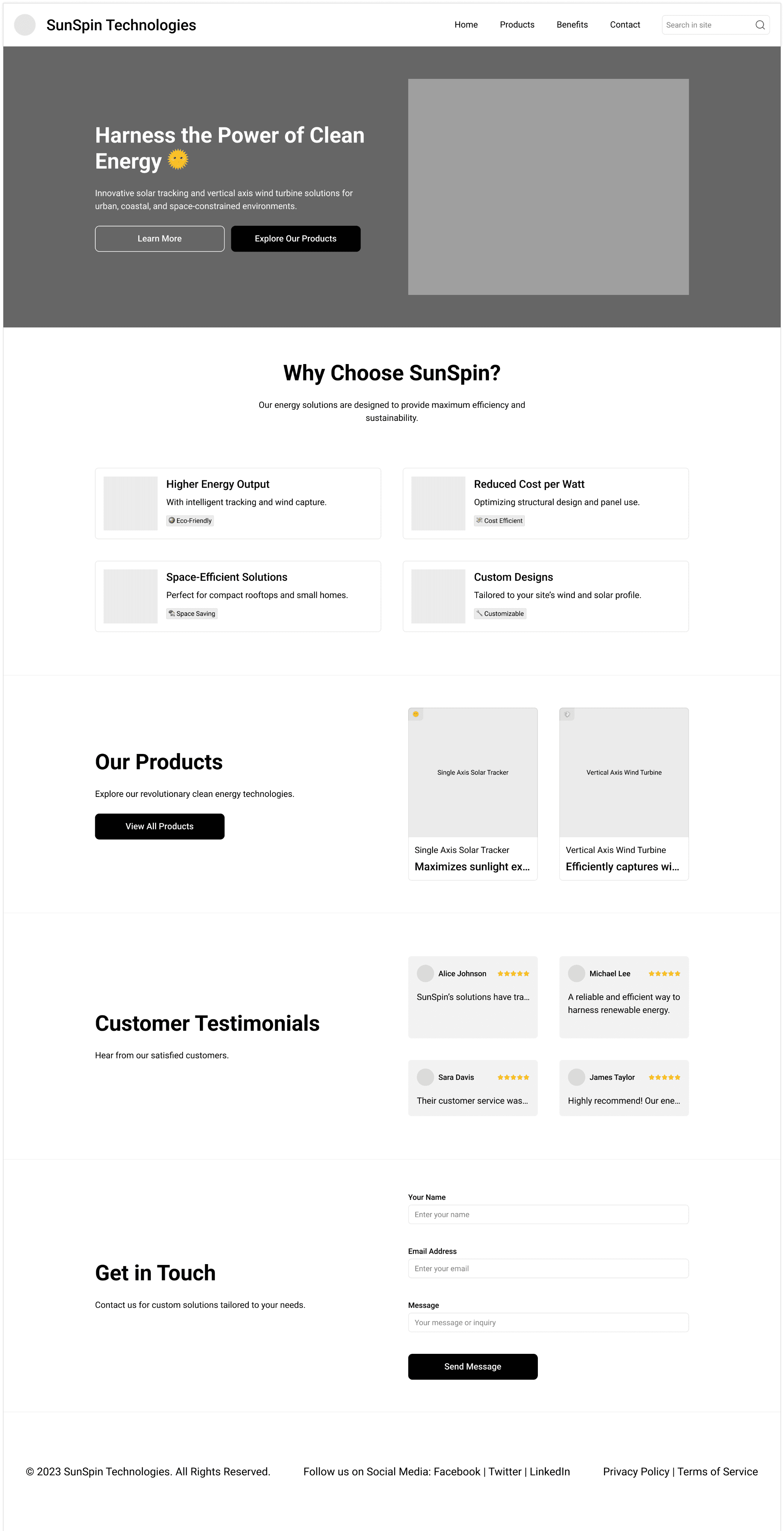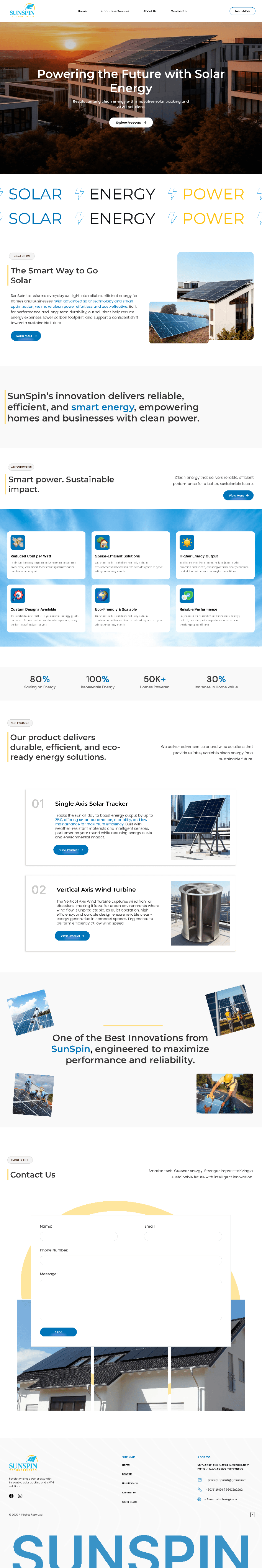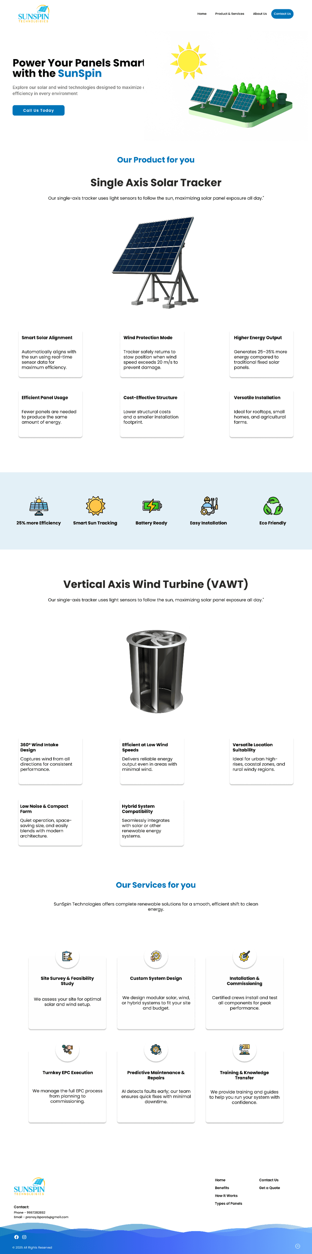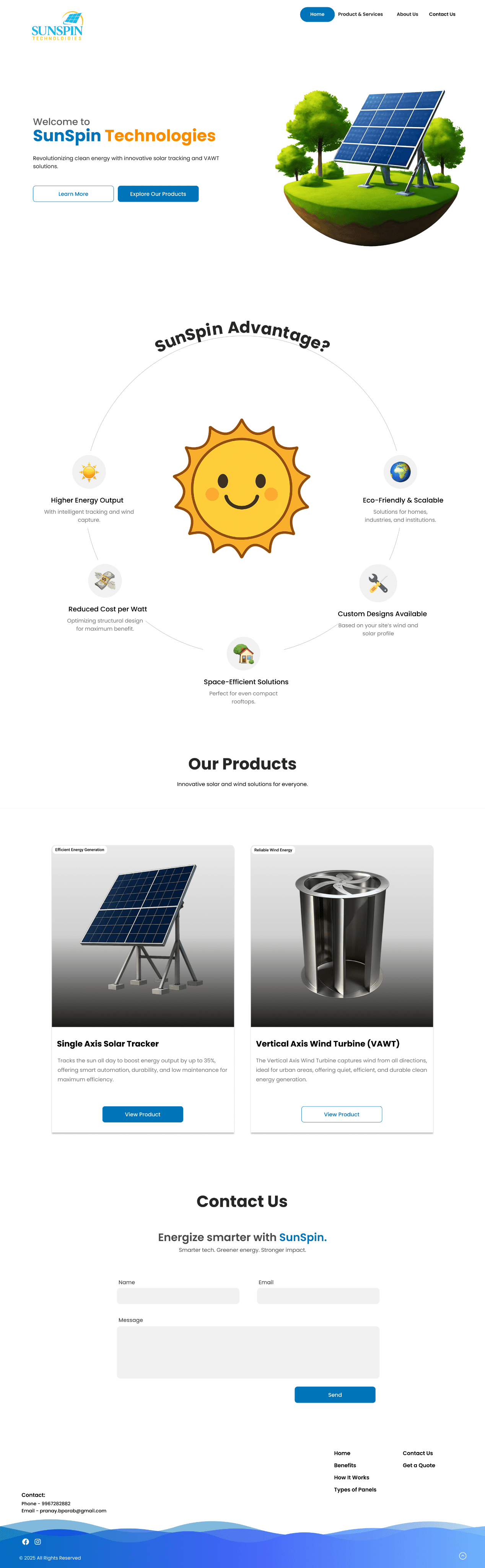 Overview: Sunspin Technologies is a renewable energy company offering innovative and sustainable solar solutions. The project involved creating a new website from the ground up to establish their digital presence and highlight their services.